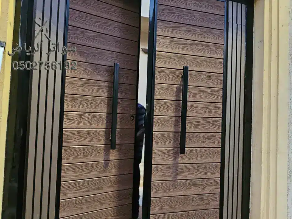 تتوفر تصاميم عصرية وبسيطة بألوان متعددة تتماشى مع ديكورات الرياض الحديثة، من أبواب بديلة الخشب بأسطح ناعمة وخطوط مستقيمة إلى نماذج ذات نقوش أو تأثيرات زخرفية خفيفة تضيف لمسة فخمة للمدخل أو الصالة.